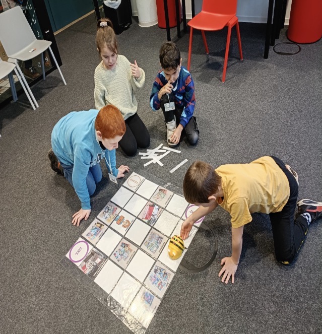 Mit der Roboterbiene „Beebot“ durften die Kinder die verschiedenen Bereiche der Bibliothek erkunden. Im Anschluss daran, war noch genug Zeit, um in den Regalen zu stöbern und ein Buch auszuleihen.