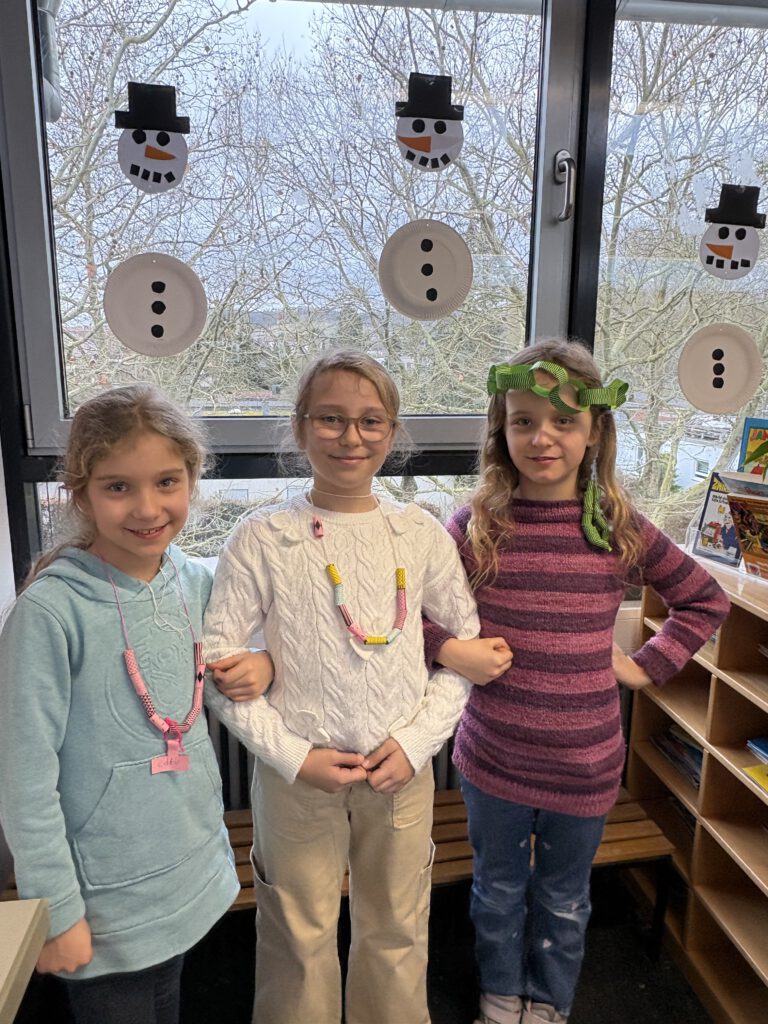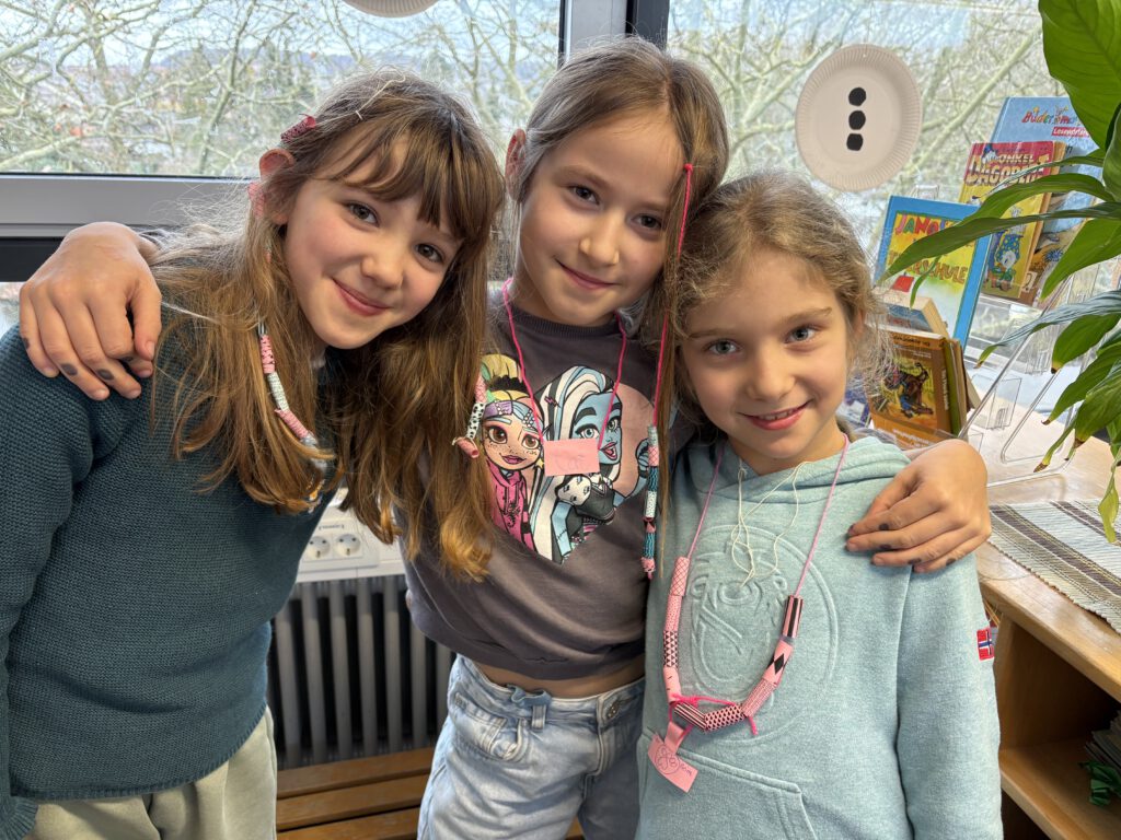 Kurz vor den Faschingsferien stellten die Kinder der Klasse 3b ihren eigenen Schmuck aus Papier her. Bei guter Laune entstanden Ketten, Armbänder, Haarschmuck und noch vieles mehr.